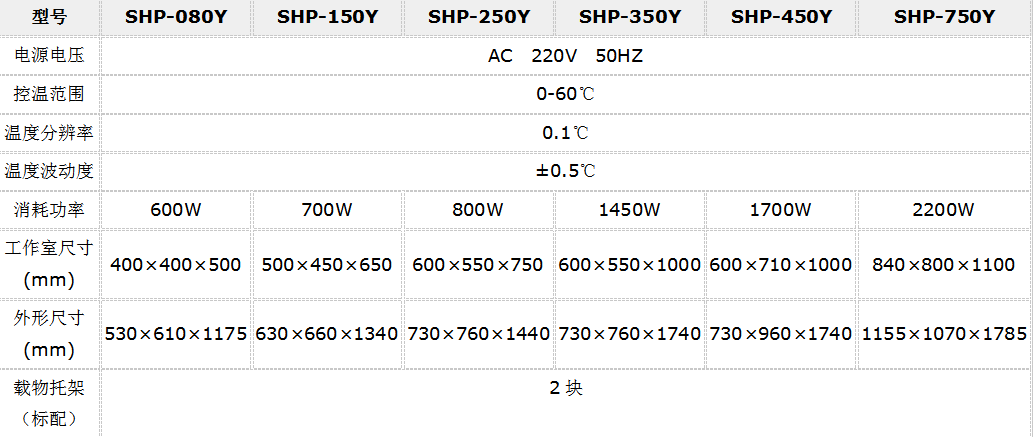 二:Y型生化培養箱 技術參數